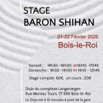 Baron Sensei dirigera un stage consacré au travail des armes, les 21 et 22 février 2026, à Bois-le-Roi. samedi après midi de 14h30 à 16h00 puis 16h15 à 17h45 dimanche matin de 09h30 à 11h00 puis de 11h15 à 12h45 Adresse: Dojo du complexe Langenargen Rue Moreau Tours , 77 590 Bois-le-Roi Le Dojo se […]